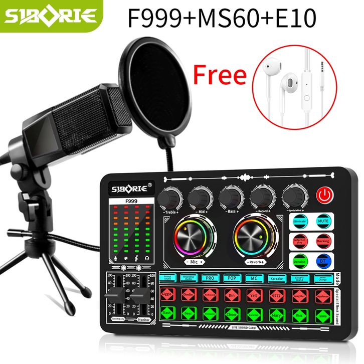 Siborie F999 soundcard+MS60 SET Mixer Bluetooth Audio USB External Sound Card paket lengkap komplit BEST SELLER