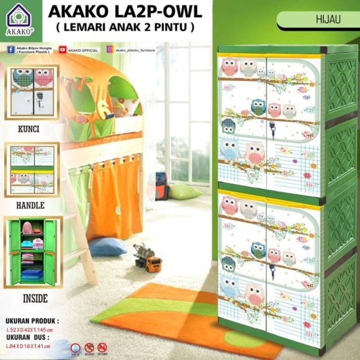 PROMO GRATIS ONGKIR DP 0 AKAKO FULL GARANSI LEMARI PAKAIAN PLASTIK ANAK BABY JUMBO 2 PINTU SUSUN 4 KARAKTER MURAH LA2P
