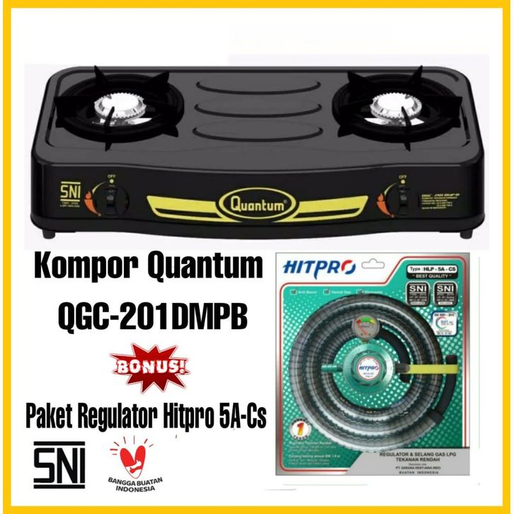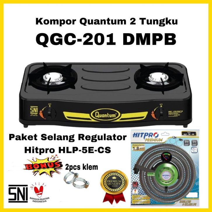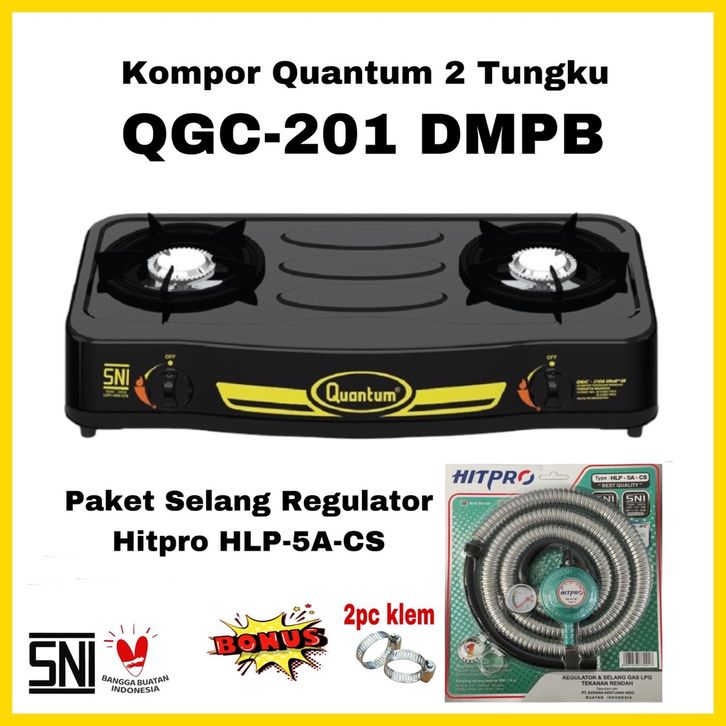 Paket Kompor Gas Quantum 2 Tungku QGC 201 DMPB BONUS Regulator Selang Gas HITPRO / Hitpro 5A-CS / HLP 5E-CS