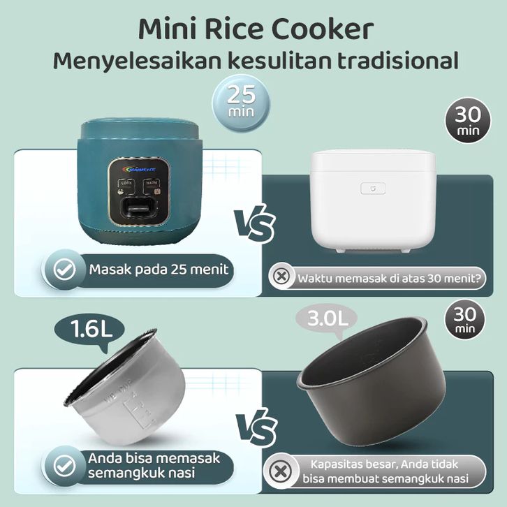 Rice Cooker Mini Portable Travel Version 1.6L Anti Lengket
