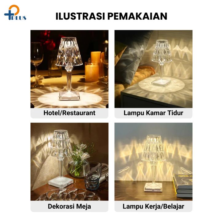 Lampu Meja Kristal LED Table Lamp Crystal 3 Warna/16 Warna Aesthetic