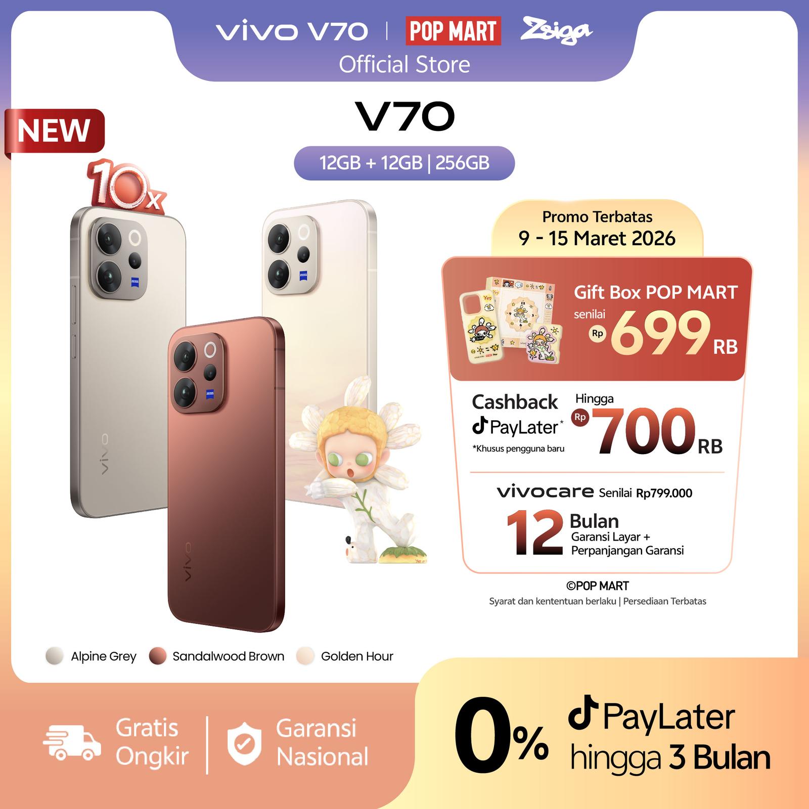 (VIVO Shop) Vivo V70 5G - 10x Telephoto Zoom, AI Stage Mode, 4K 60 fps Video Recording, AI Travel Portrait, OriginOS 6.0