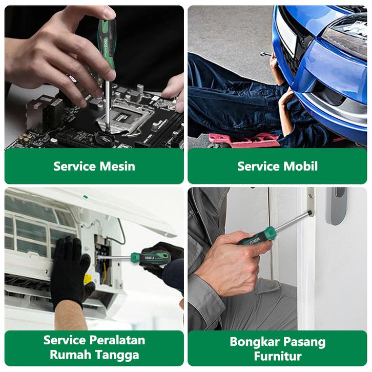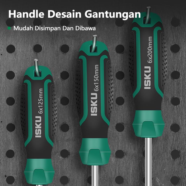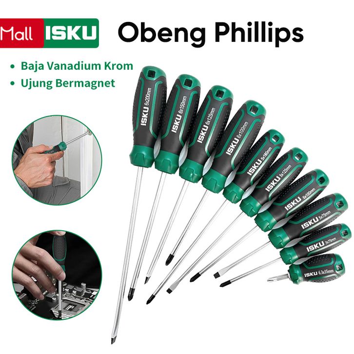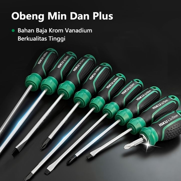 ISKU obeng plus + 3" 5" 6" 8" obeng magnet gagang karet plus + ujung magnet