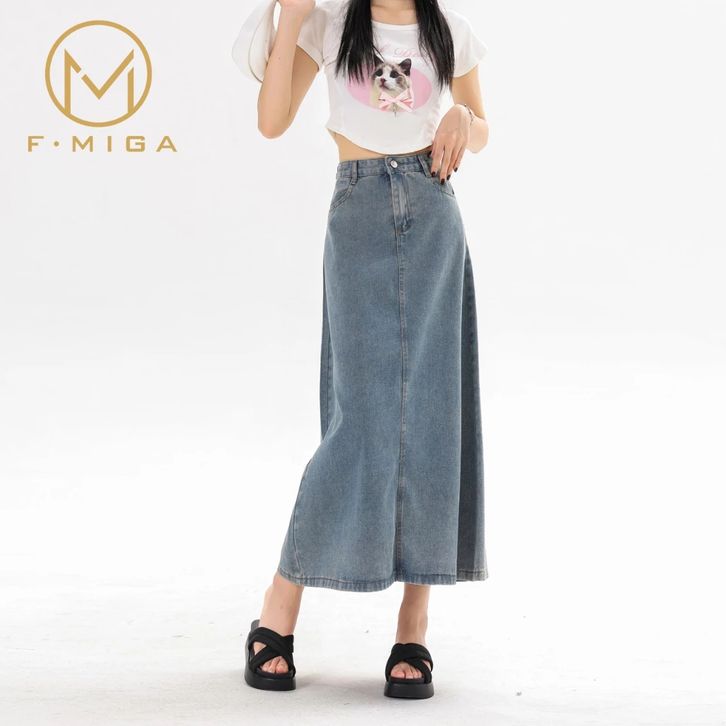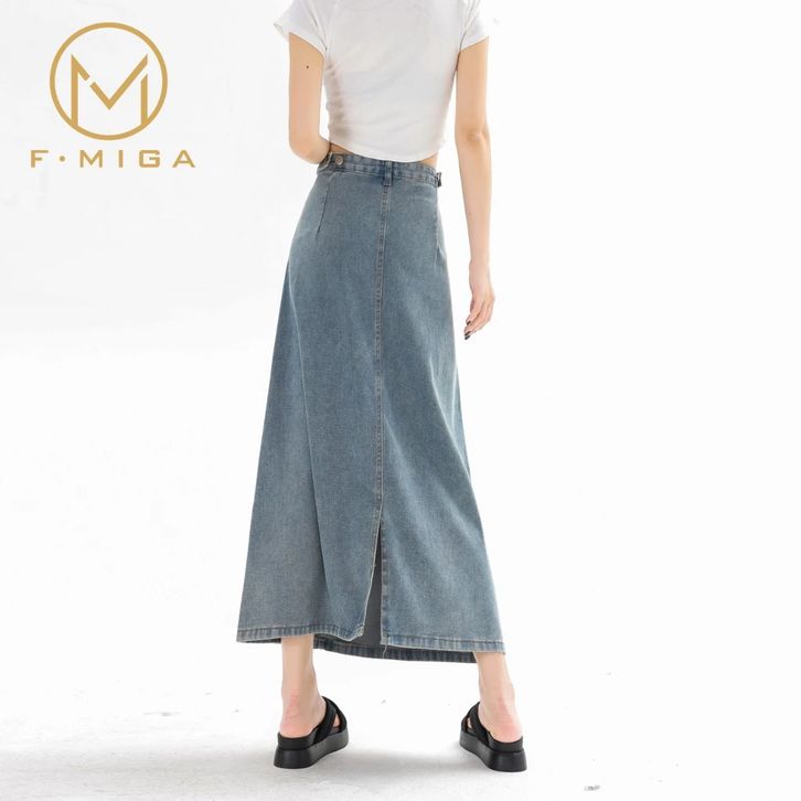 Rok Wanita High Waist Denim Jeans Midi Premium Terbaru 2025