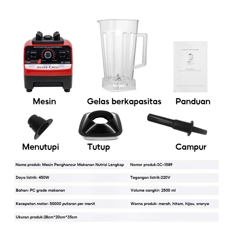 TIXX Juicer Blender 450W 2.5L Mixer Listrik Kapasitas Besar Jus Sayuran Bahan PC Hadiah Foodgrade