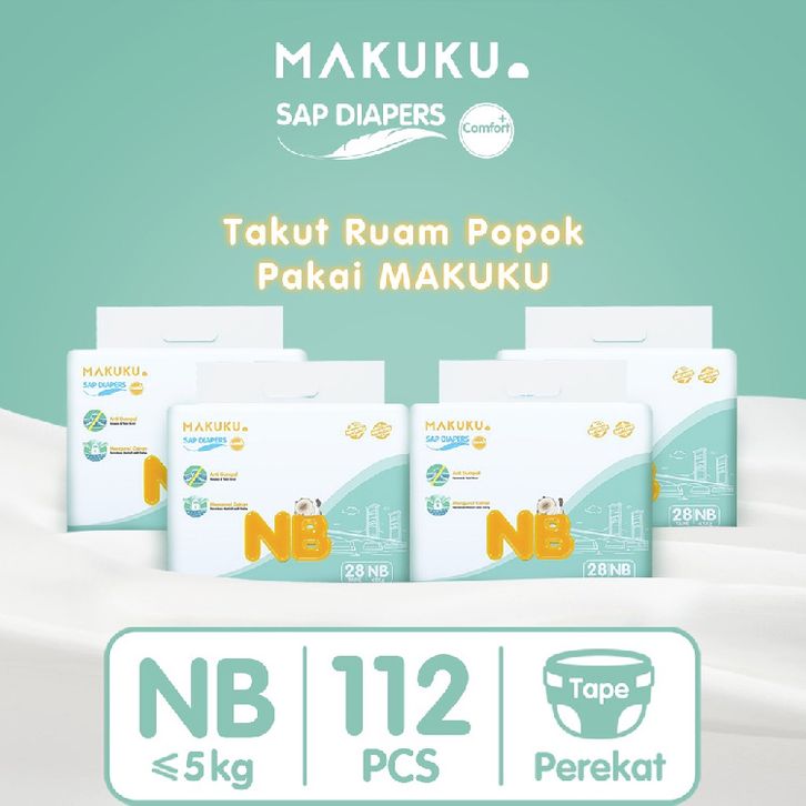 Popok Pampers Pempes [4 PACK] MAKUKU SAP Diapers Comfort+ Tape NB28 x 4pcs/Popok Bayi Tipis Extra Tipe Perekat Termurah