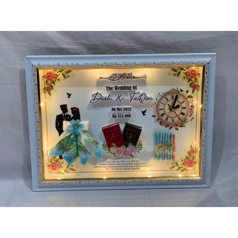 BINGKAI MAHAR PERNIKAHAN PENGANTIN PLUS LAMPU ELEGAN 40 CM X 30 CM