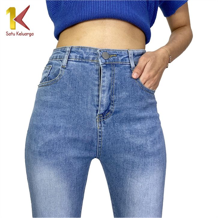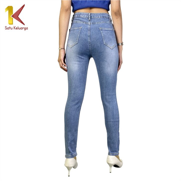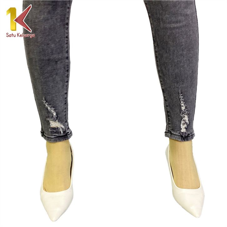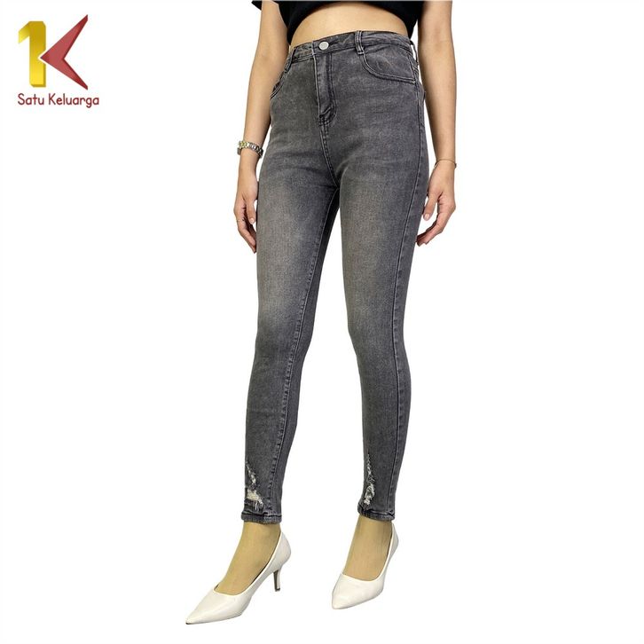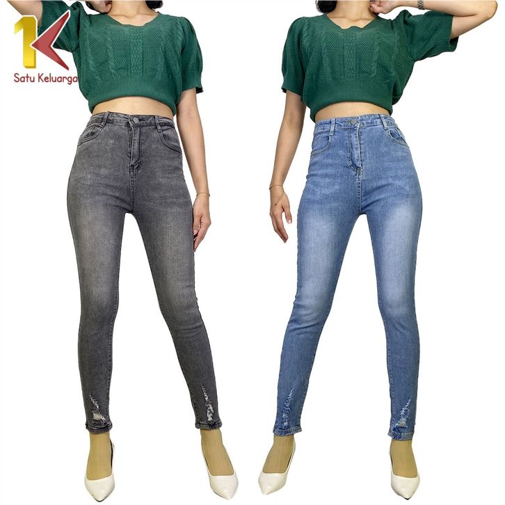 Stretch Ripped Jeans High Waist Celana Panjang Wanita Kekinian Celana Sobek Bawah Model Pinggang Tinggi 1K P582