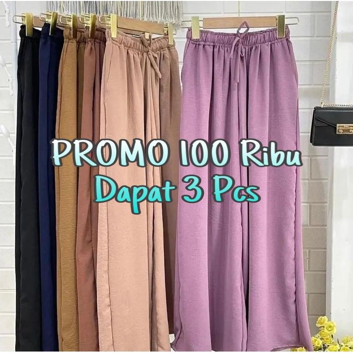 celana wanita terbaru / Celana Kulot Crinkle Air Flow Jumbo Premium 100 Ribu Dapat 3 Pcs (Random)