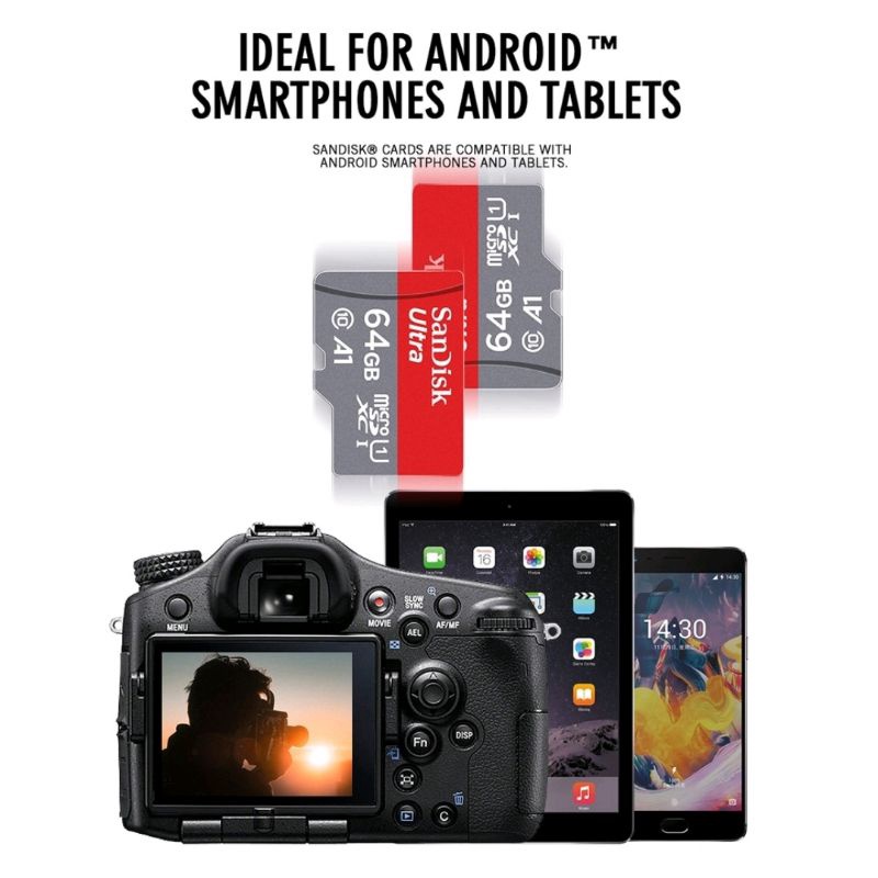 MEMORY CARD SANDISK BUAT HP,CAMERA, CCTV PLUS ADAPTOR MICRO SD 16,32,64,128 GB TERLARIS