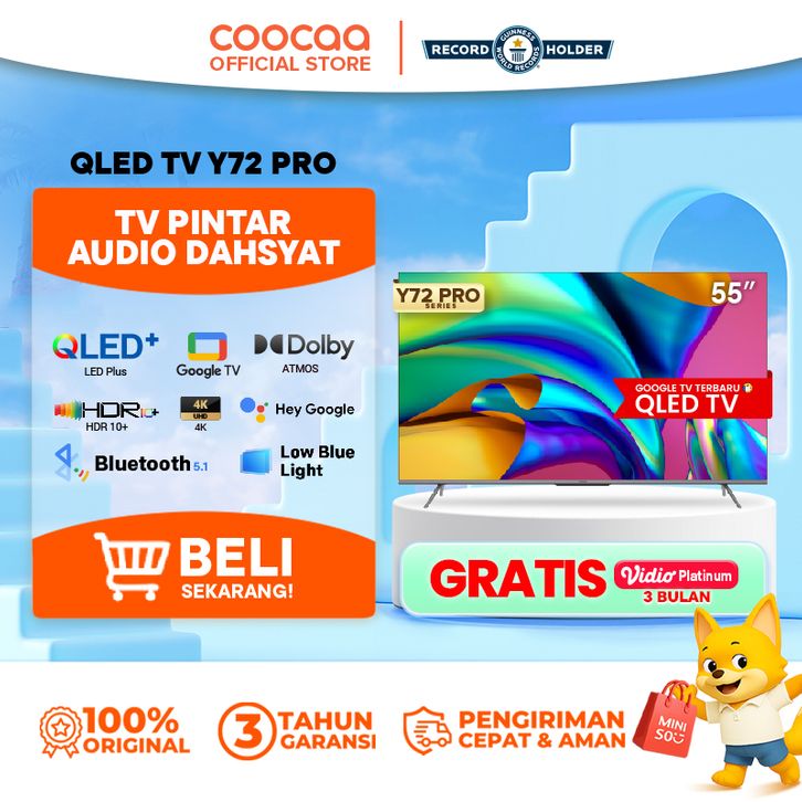 [Google TV] COOCAA 55 inch - QLED - 4K - HDR10+ - Netflix/Youtube - Google Assistant - Dolby (Coocaa 55Y72 PRO)