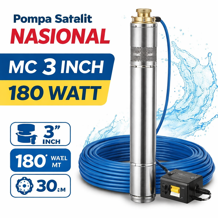 Pompa Satelit 3 Inch Nasional MC Pump 0.25HP - 180 Watt - Kabel 30 Meter Daya Hisap 25m promo murah