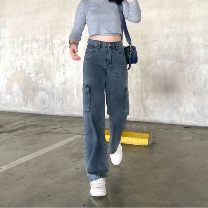 CELANA CARGO CEWEK JEANS HIGHWAIST JEANS WANITA TERBARU - CELANA CARGO WANITA