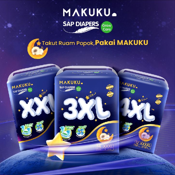 Popok Pampers Pempes [1 PACK] MAKUKU SAP Diapers Grow Care Pants XXL/3XL/4XL Popok Anti Gumpal Xtra Tipe Celana Termurah