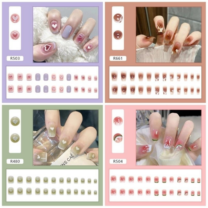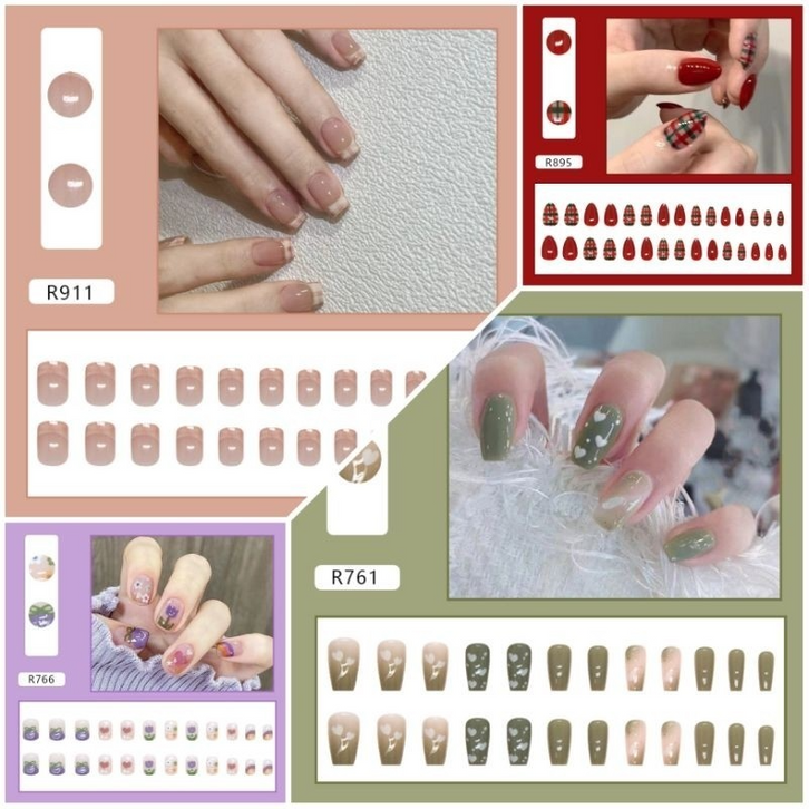 Kuku Palsu Nail Art Motif Baru Kuku Palsu 24pcs Fake Nails Box Free Lem Cair Tahan Air
