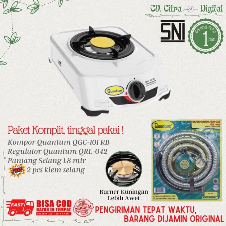 Paket Kompor Gas Quantum 1 Tungku Qgc 101Rb Free Selang Regulator Gas Quantum Qgc 101Rb Murah