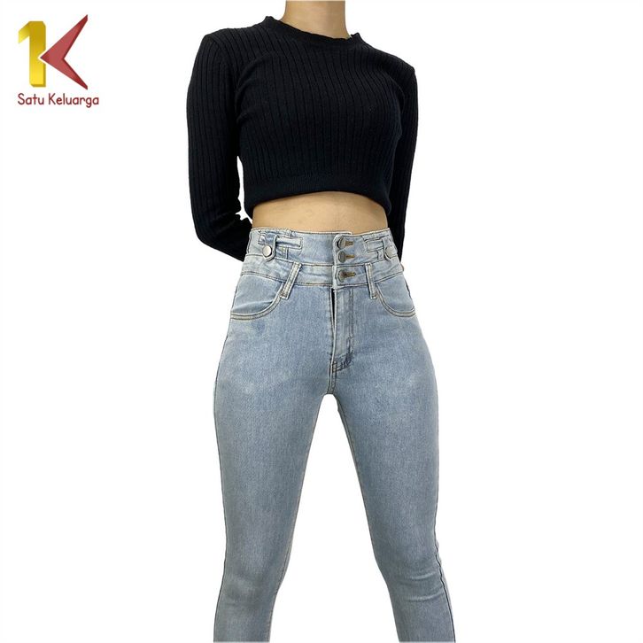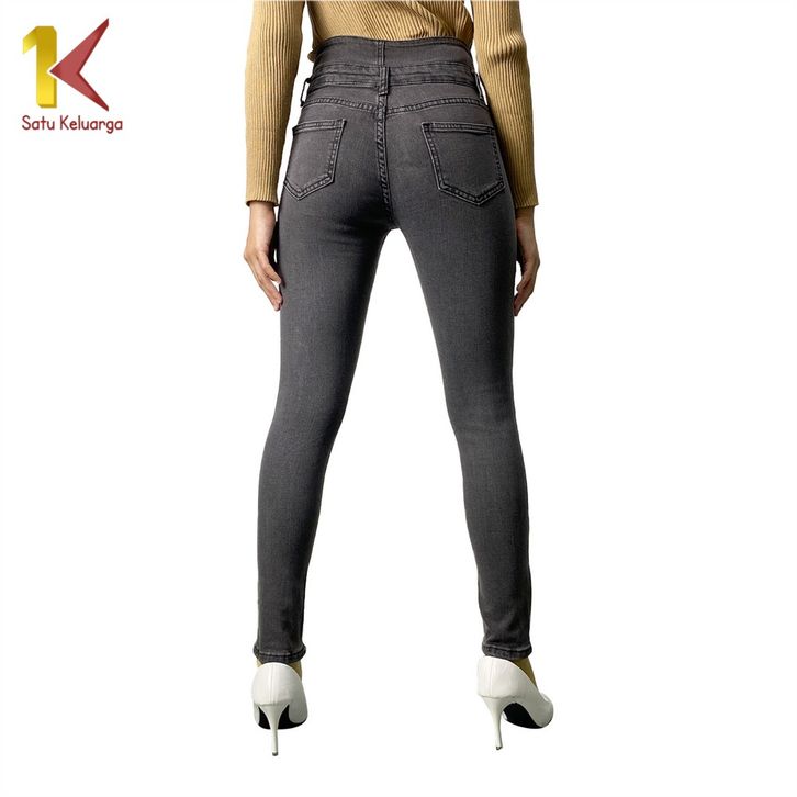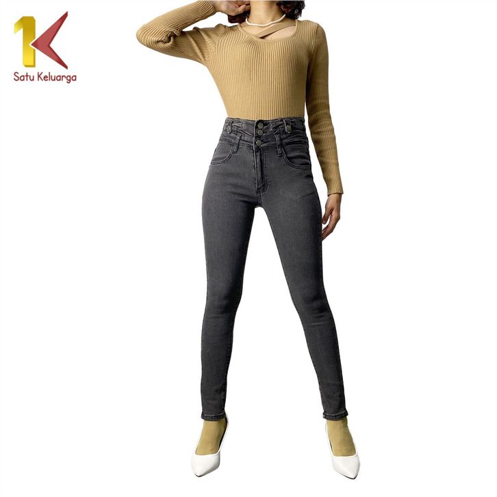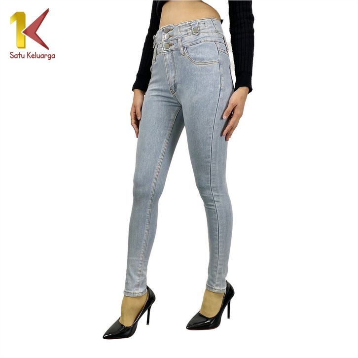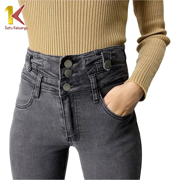 Highwaist Skinny Jeans Stretch Wanita Style dengan 3 Kancing Kekinian / Celana Panjang High Waist Skinny 1K P586