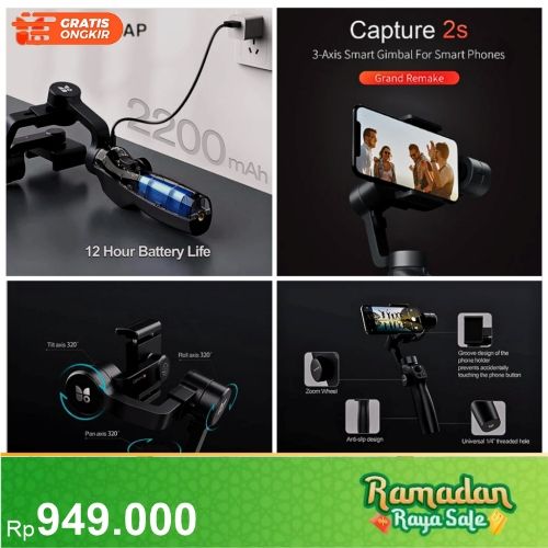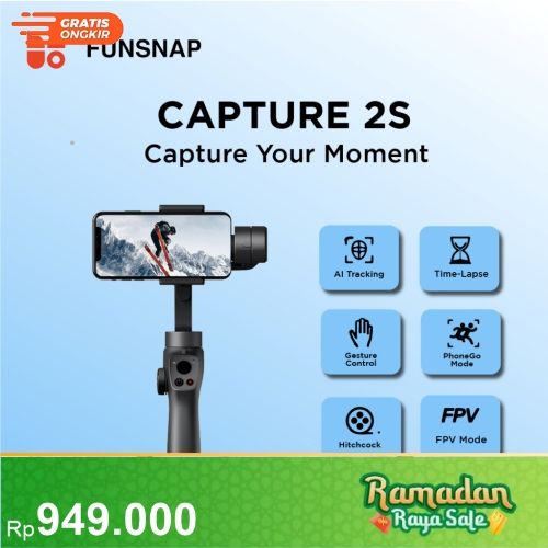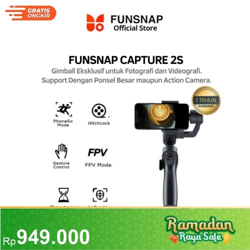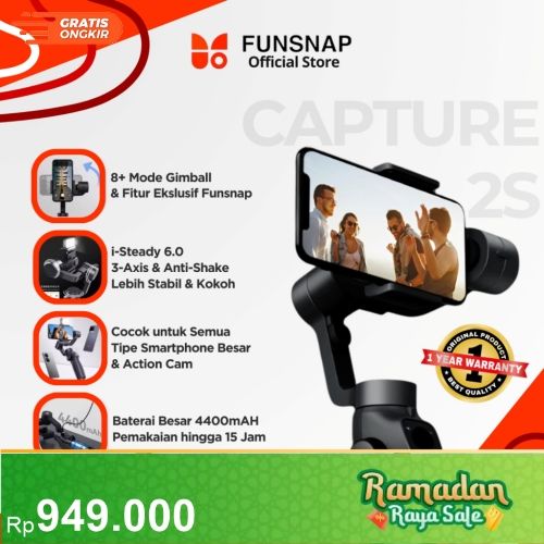 Funsnap Capture Gimbal 2s Stabilizer 3-Axis Anti Shake untuk Semua HP Smartphone GoPro Action Cam 4400mAH - Tongsis