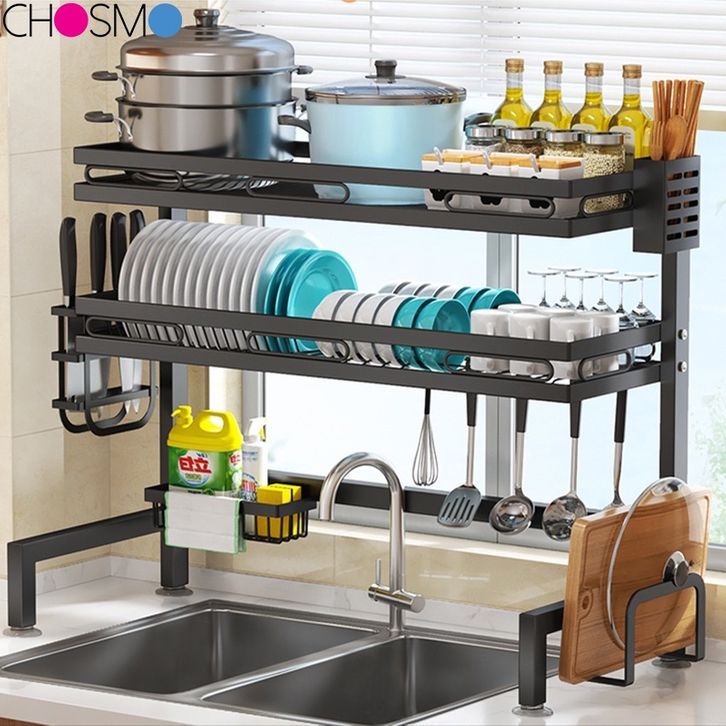 Rak Piring Wastafel Stainless Steel Rak Cuci Piring Wastafel Rak Dapur Rak Piring Gantung Penyimpanan Dapur