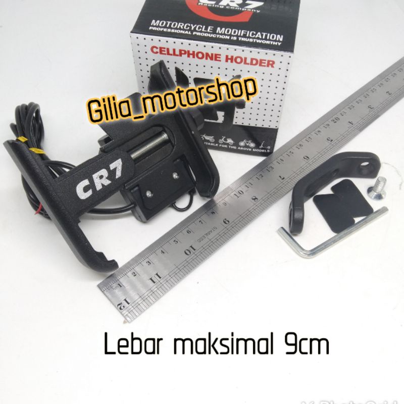Holder Hp Cr7 Motor Jepit Spion Plus Charger Usb Dudukan Handphone Di Motor Plus