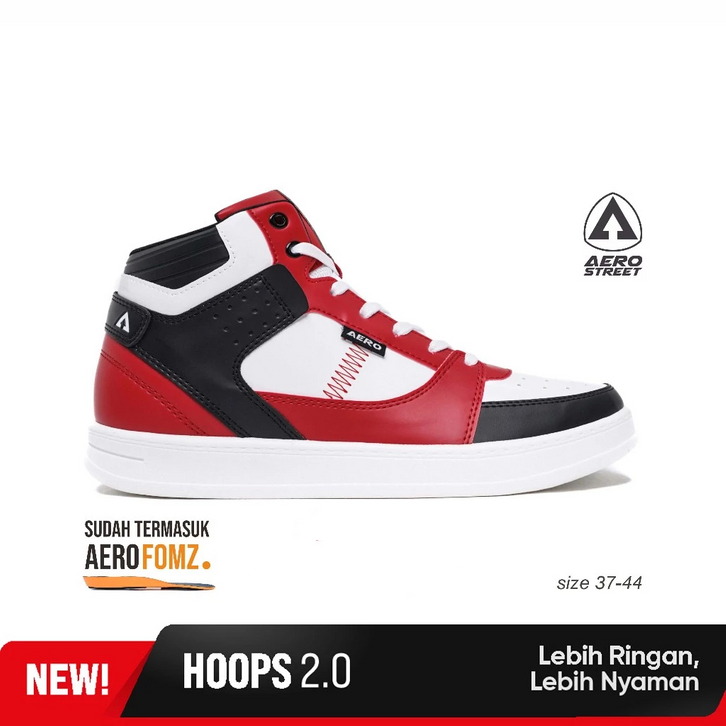 Aerostreet Original 37-44 Hoops High 2.0 Putih Merah Hitam - Sepatu Sneakers Pria Wanita | Aerostreet Official Store