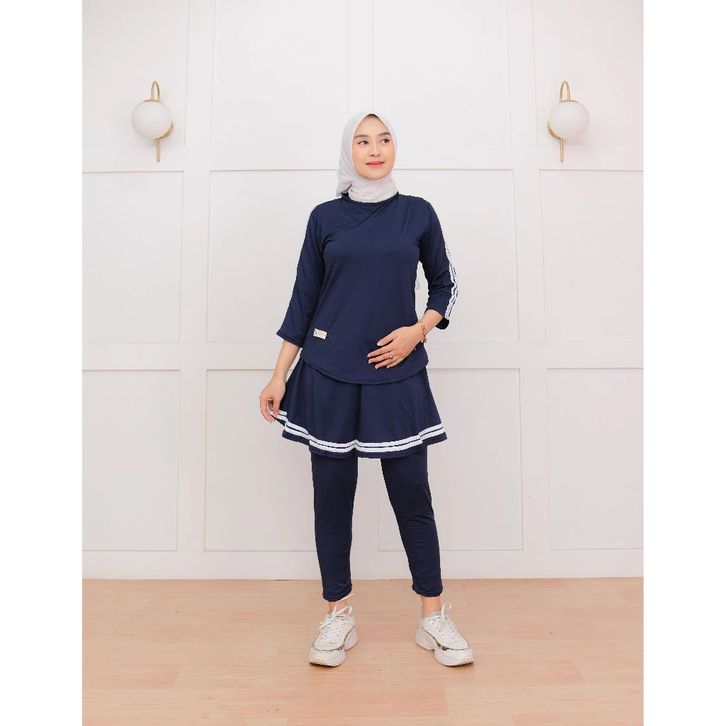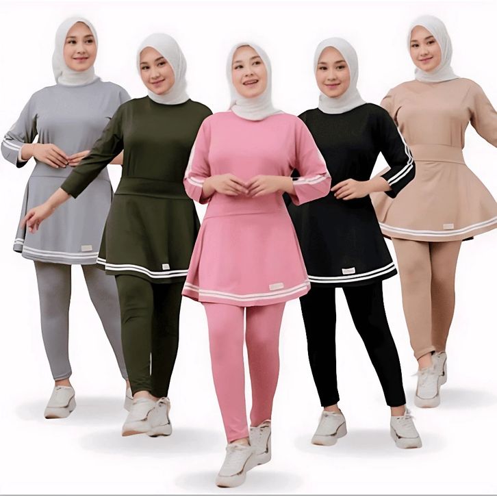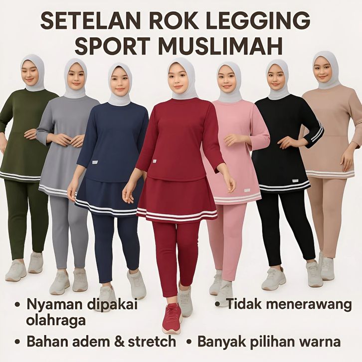 Setelan Legging Rok Senam Muslimah Sportwear Gym Yoga Tenis Sepeda Baju Padel Tenis Set Zumba Olahraga Wanita