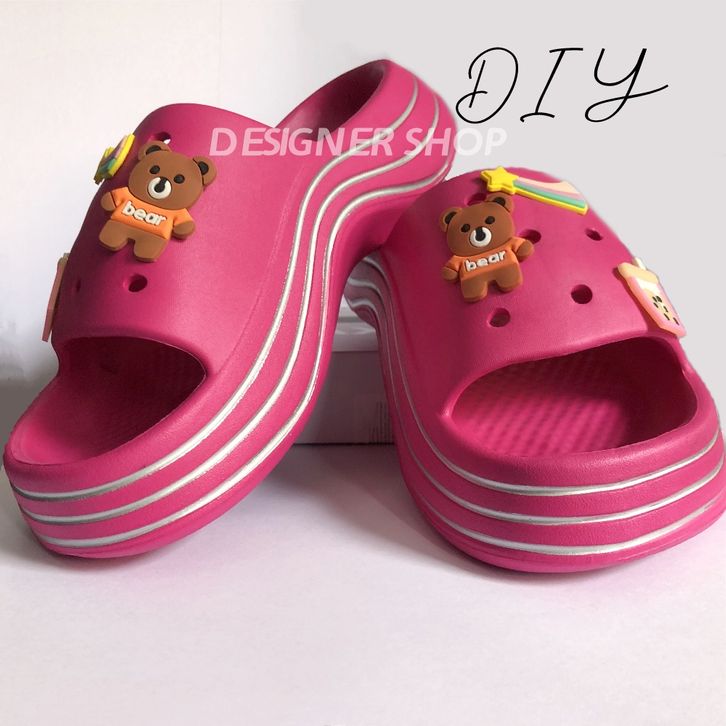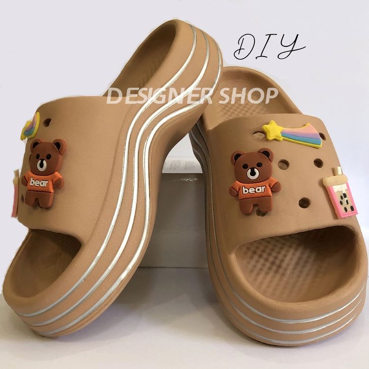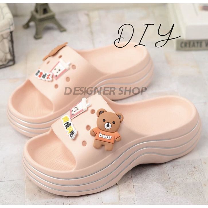 Sandal Wanita Kekinian Sandal Jelly Fuji Motif Bear Sendal Wedges Import - Sandal Wanita Import