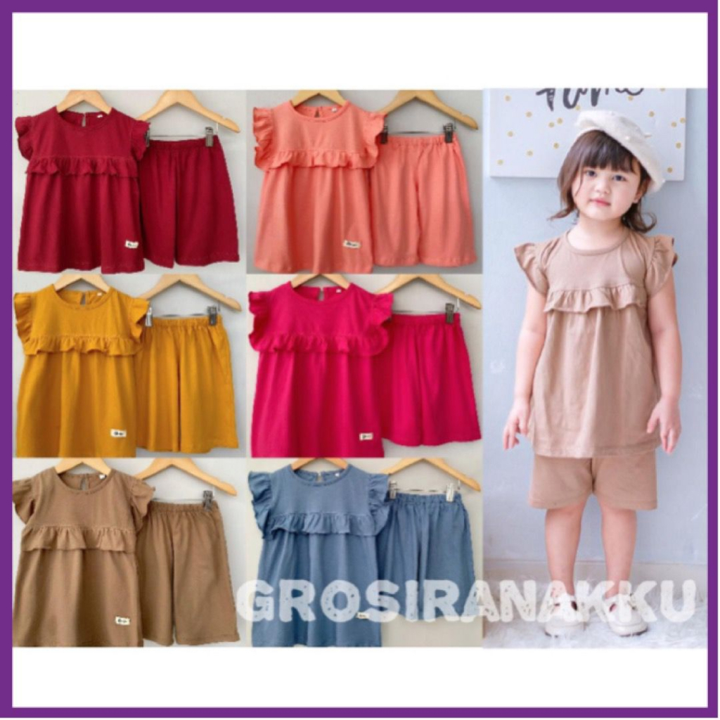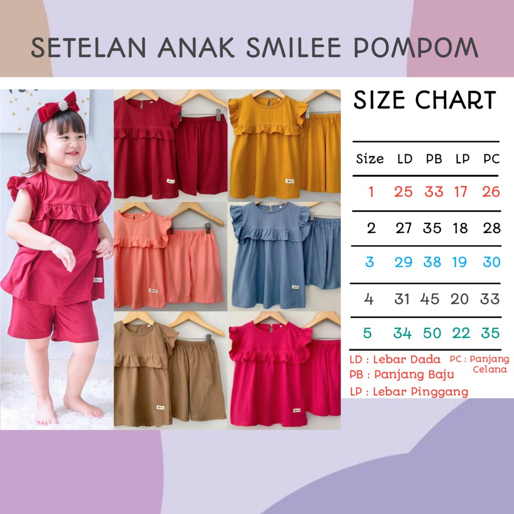 SETELAN ANAK KAOS SMILEE POMPOM MIX WARNA SIZE 1-5TAHUN