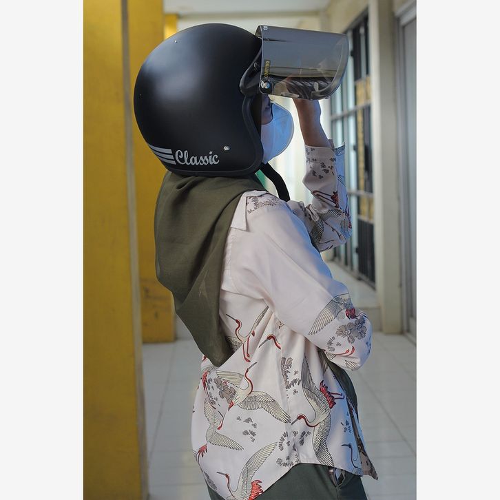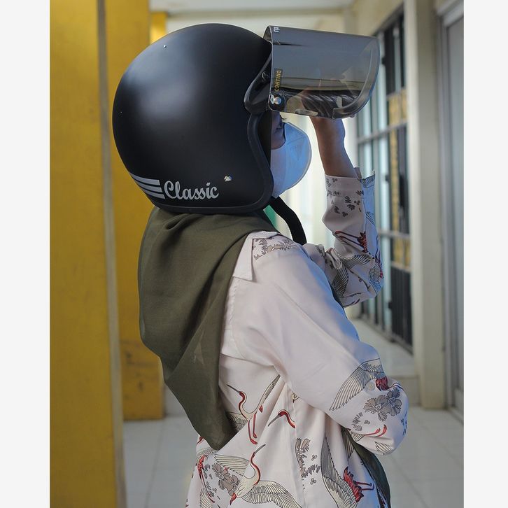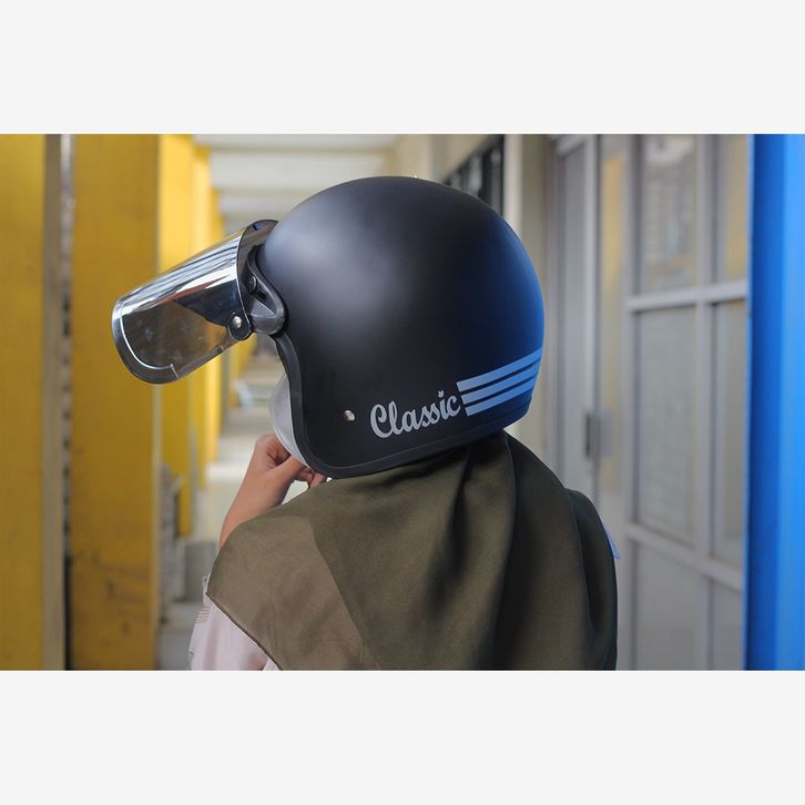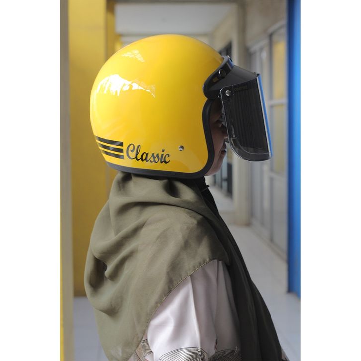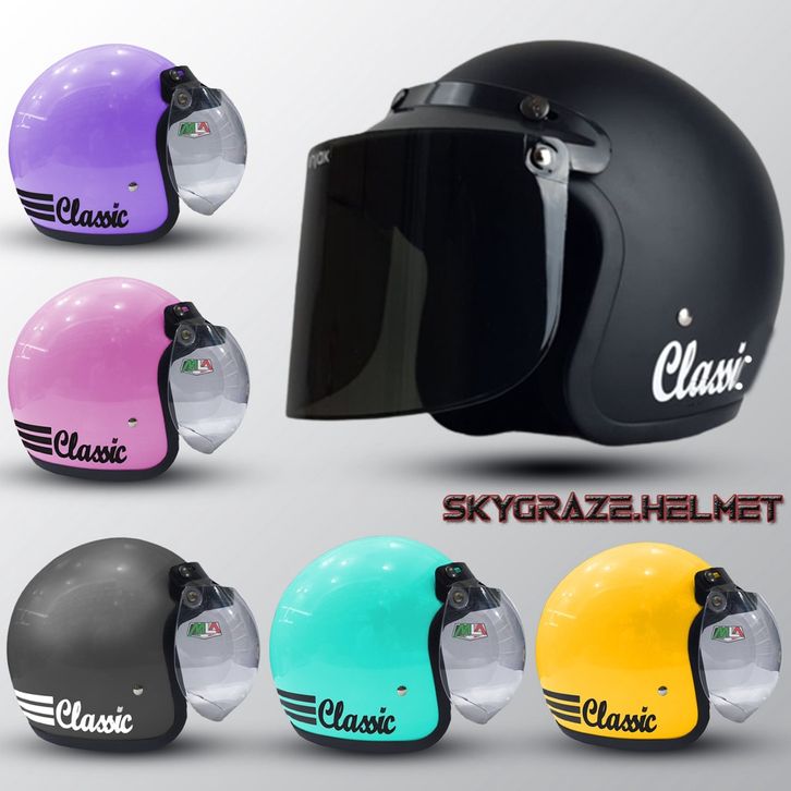 Helm Bogo Retro Classic SNI Original Dewasa Full Leher Kaca Cembung Kaca Datar Injak Hitam Bening Untuk Pria Dan Wanita