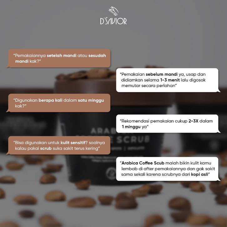 Body Scrub untuk Mencerahkan kulit serta mengurangi bekas luka | D'SAVIOR Arabica Coffee Scrub 100g