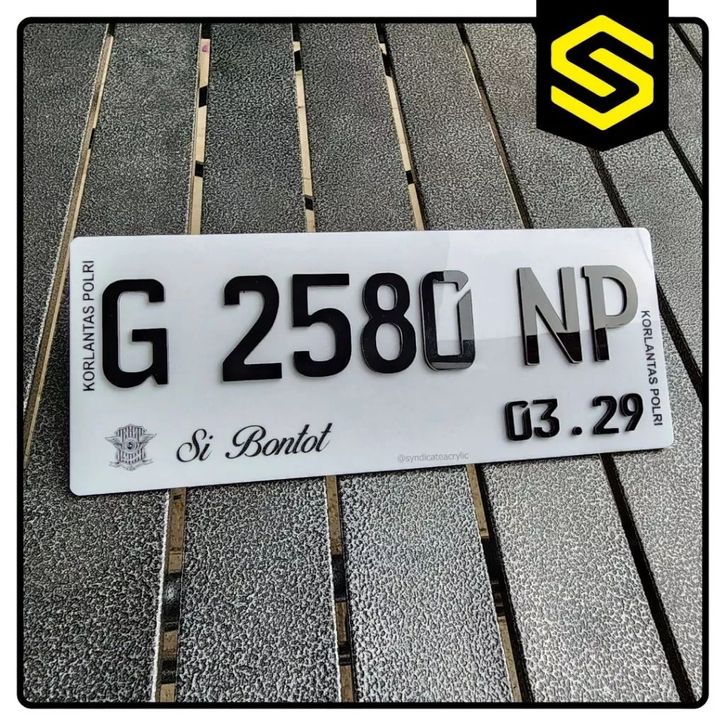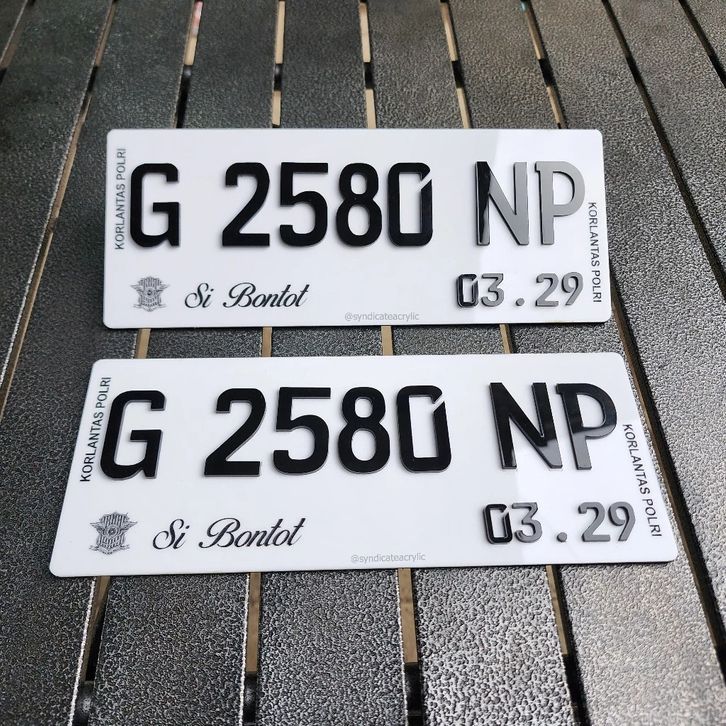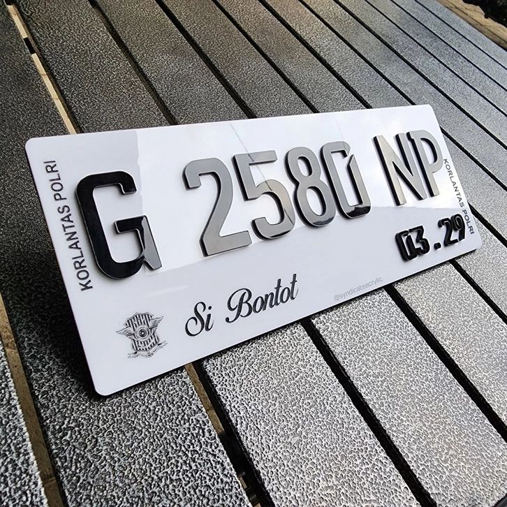 Plat Nomor Motor Custom Putih Akrilik Timbul Hitam Dan Grafir Baut Universal