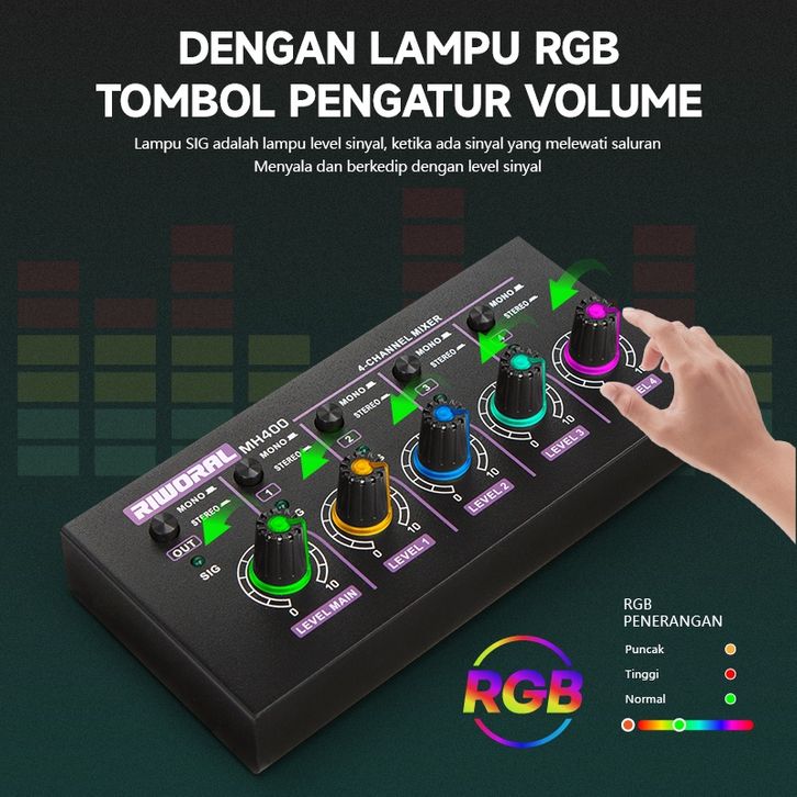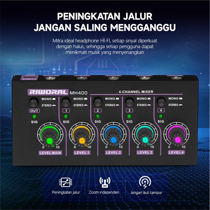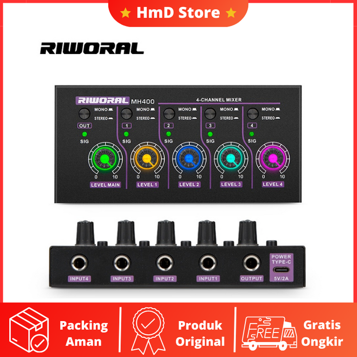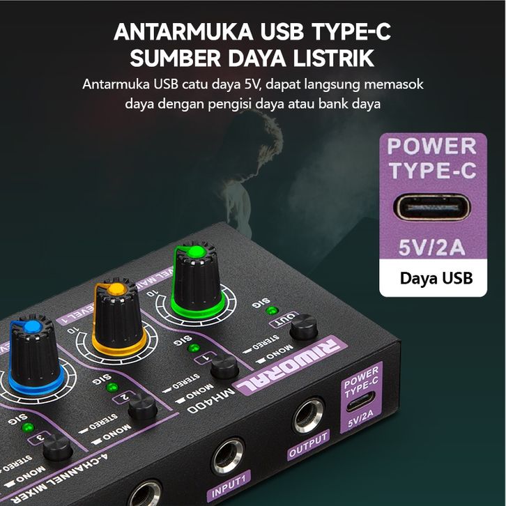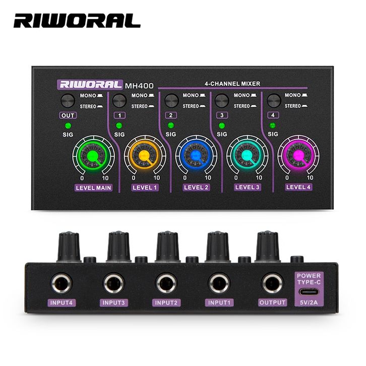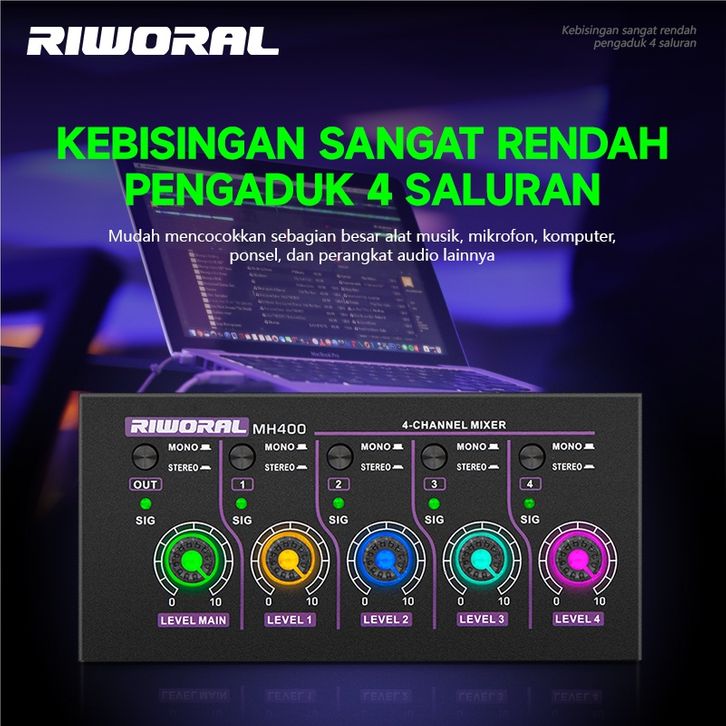 RIWORAL MH400 mixer audio mini 4 channel Kompatibel dengan sebagian besar alat musik, mikrofon, komputer, ponsel, dan pe