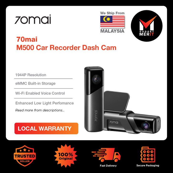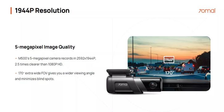 70mai M500 Dash Cam | 24 Hours Parking Mode | Vision with ADAS | Voice And App Control | Video resolution 1944P | 500mAh