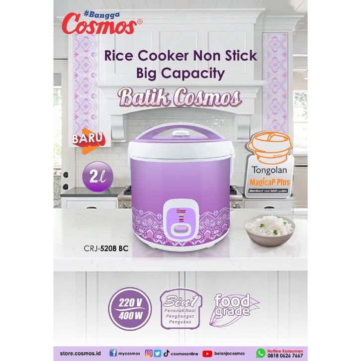 Rice Cooker Cosmos Jumbo CRJ 5508 BC 2,5 Liter CRJ 5208 Batik Big Capacity 2 L Penanak Nasi Batik Terbaru