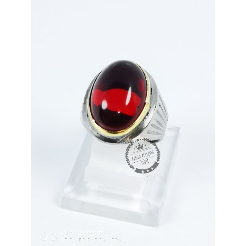 BATU CINCIN AKIK MERAH SIAM POLOS RING STAINLESS TANAM HIGH QUALITY