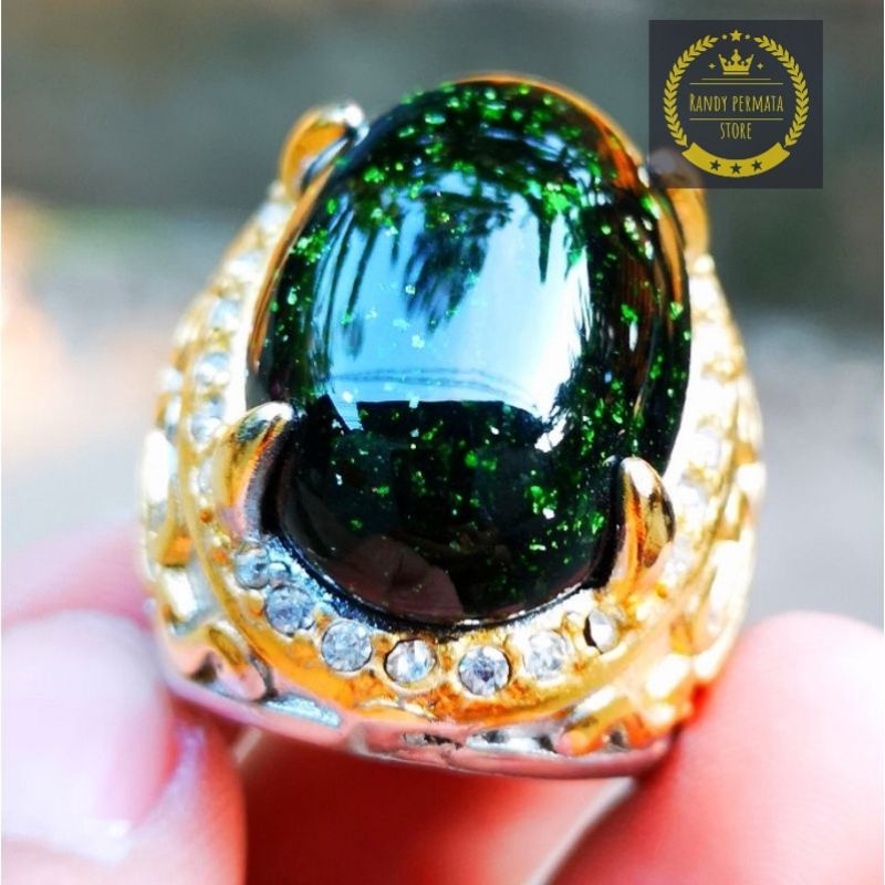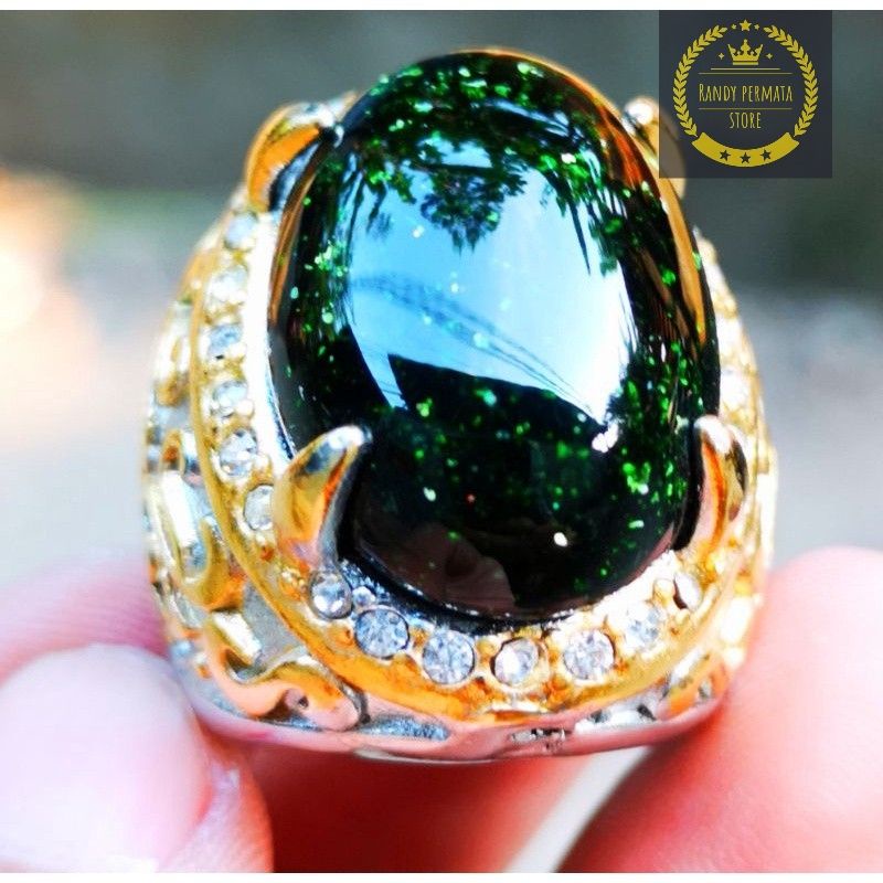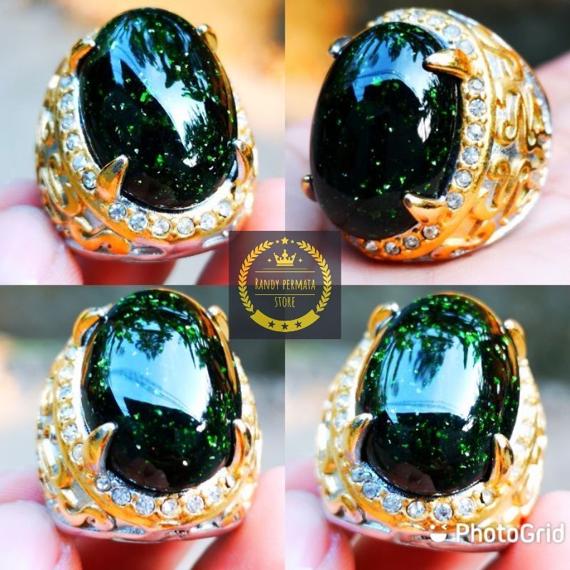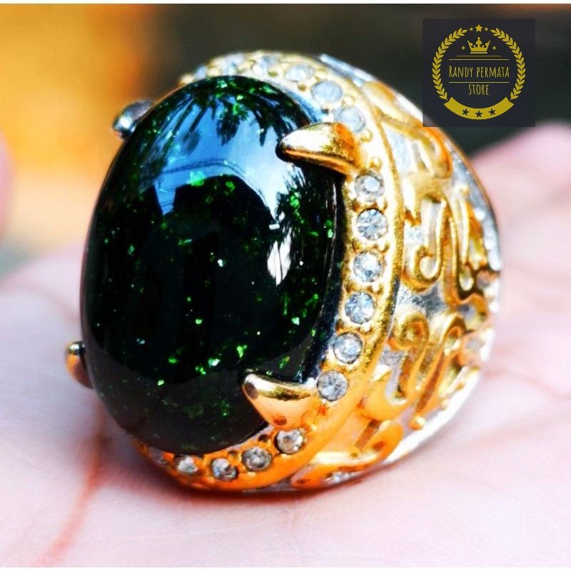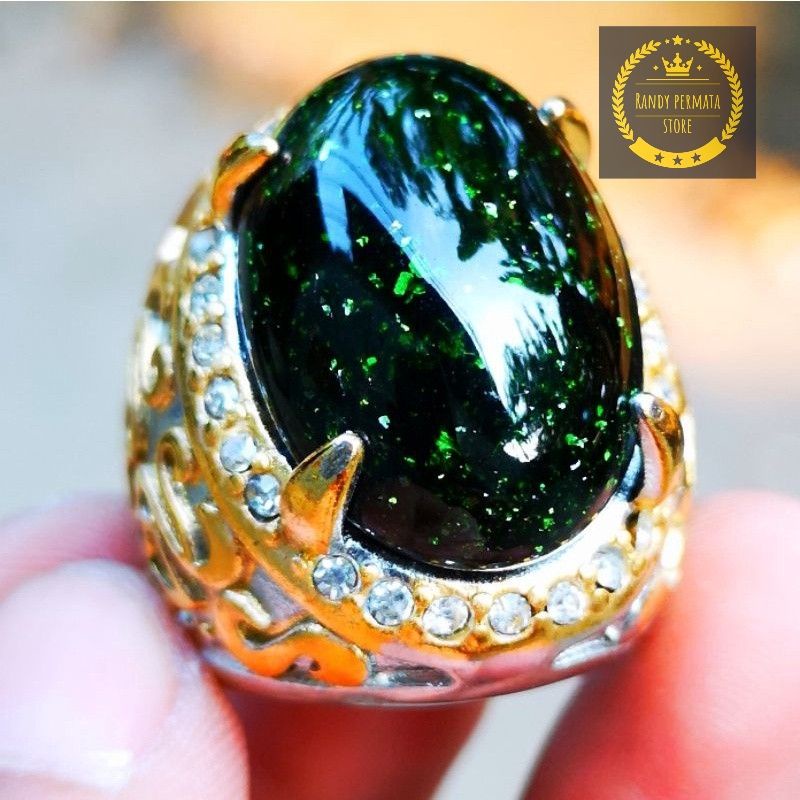 BATU AKIK BLACK OPAL TIM TIM OBSIDIAN RING TITANIUM MEWAH