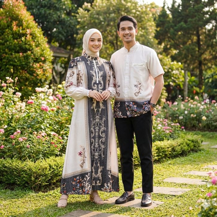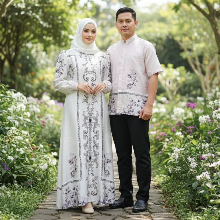 SET Couple ALEV Dress Bahan Silk Premium Set Pasangan Atasan kemeja | Gamis Motif Elegan silk Premium