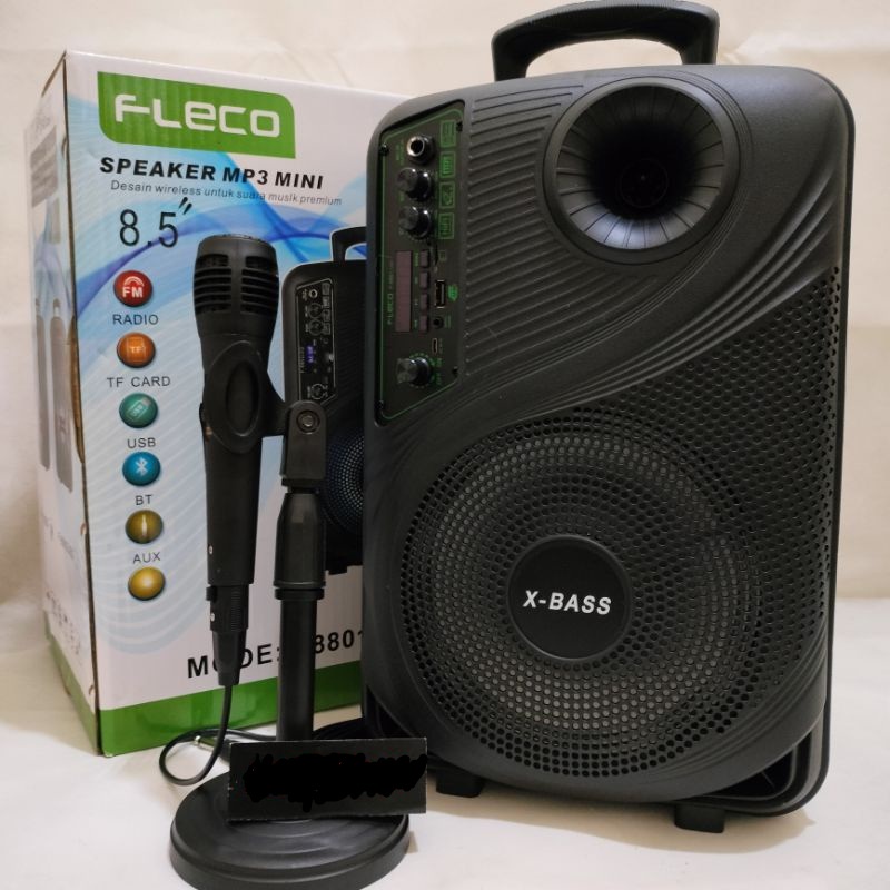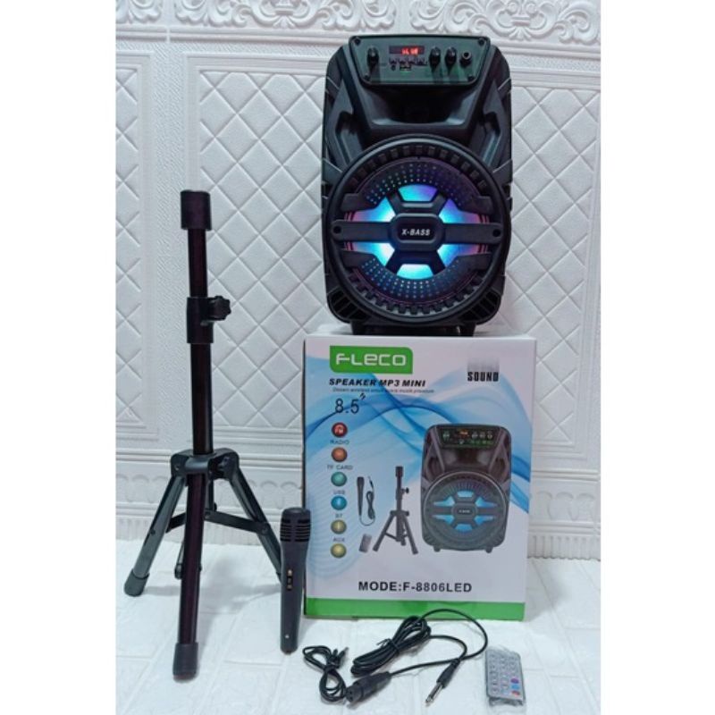 TERMURAH SPEAKER BLUETOOTH FLECO F 8809 LED 8'5 INCH FREE MIC WIRELESS KARAOKE + REMOTE + STAND