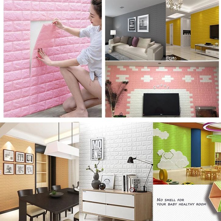 PAKET 10 LEMBAR Wallpaper 3D Foam Batu Bata Sticker Dinding Timbul Wallpaper dinding foam 3d kamar dapur