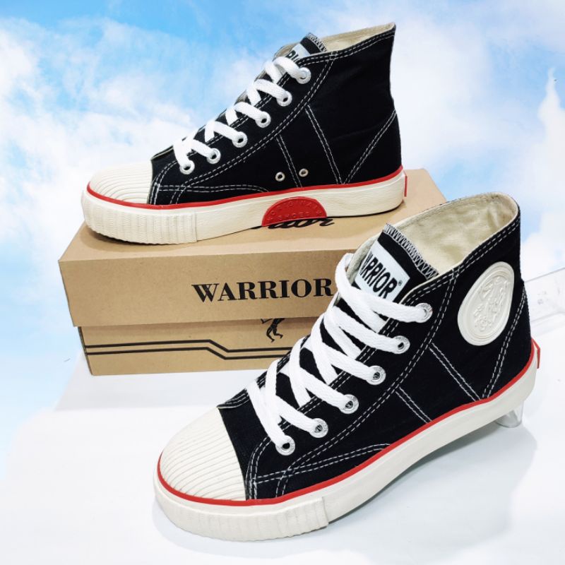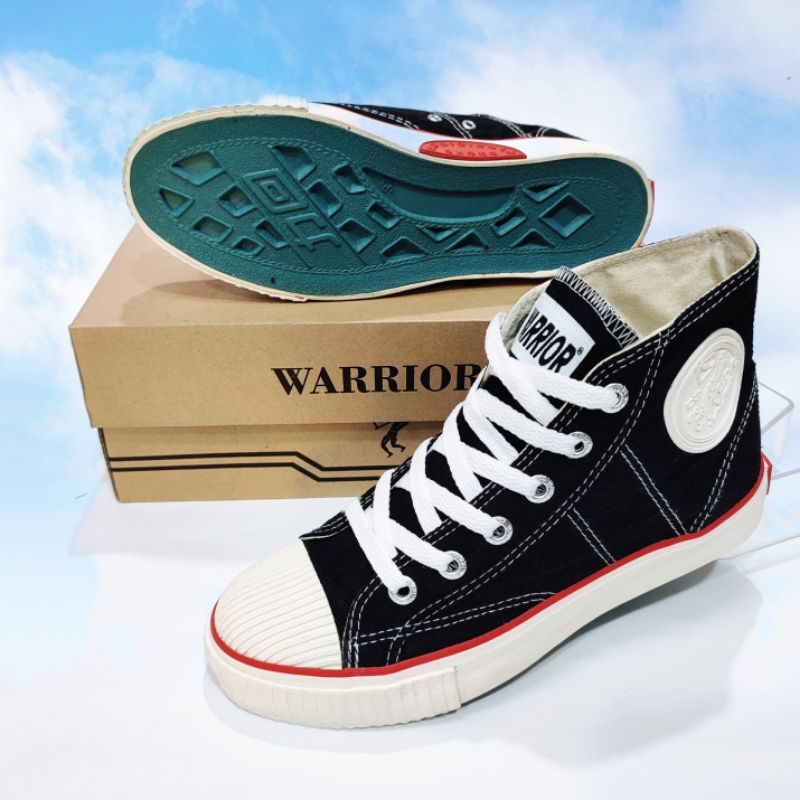WARRIOR SEPATU SEKOLAH KULIAH KERJA COWOK CEWEK KEREN WARIOR CLASSIC HIGHCUT TINGGI TALI HITAM PUTIH BLACK ORIGINAL