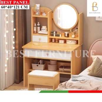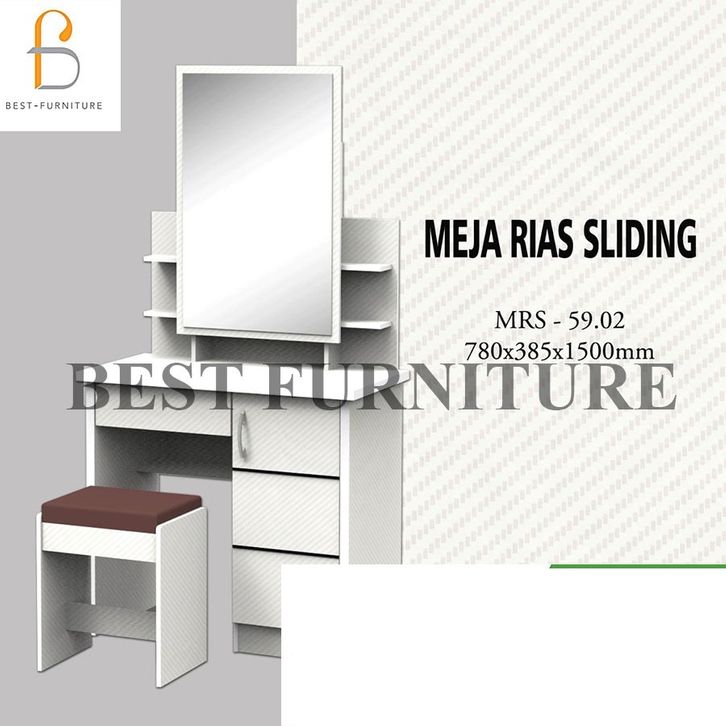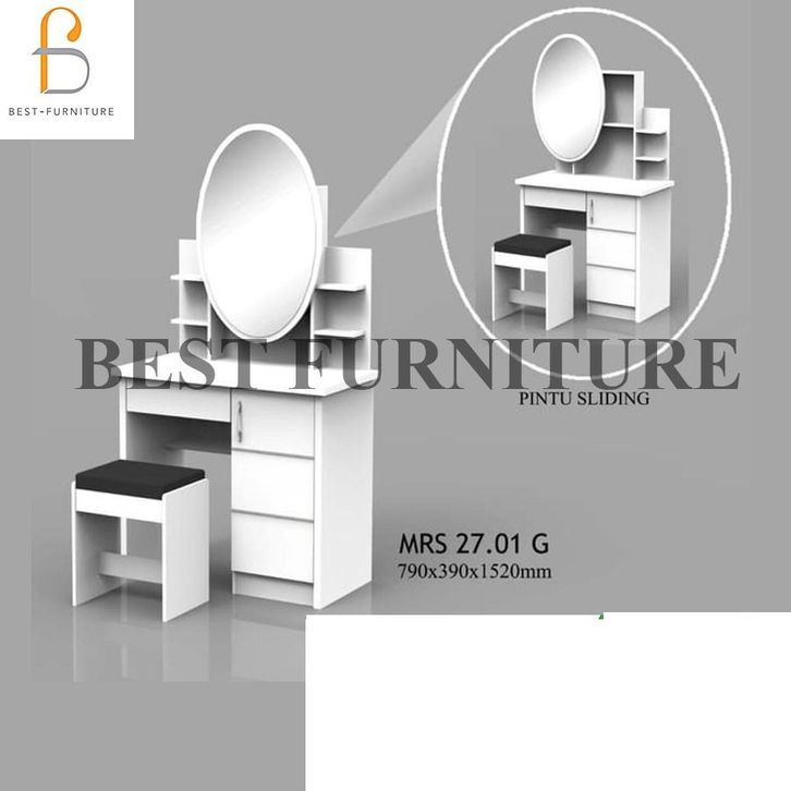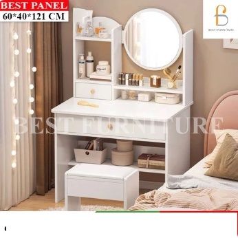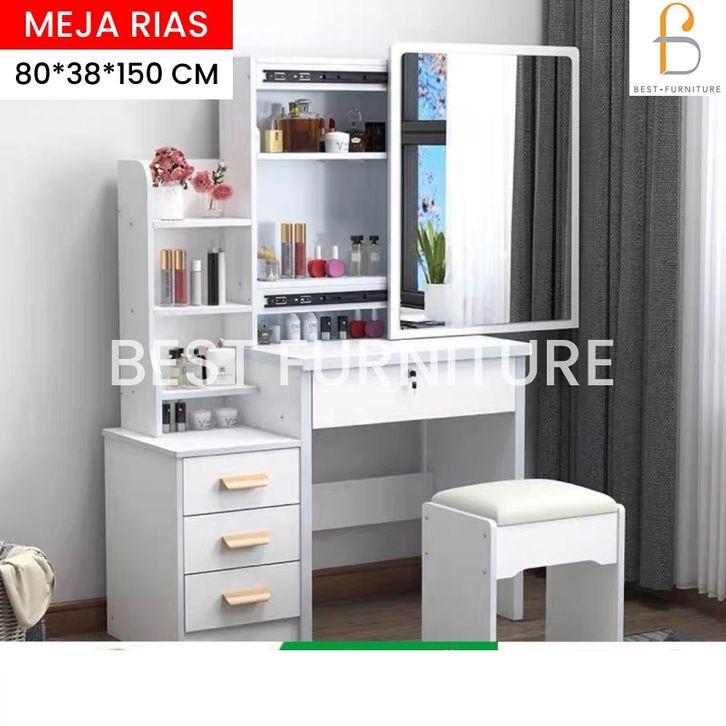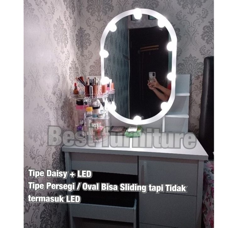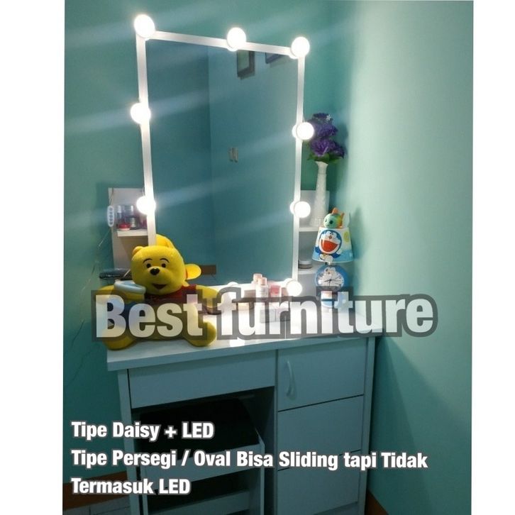 BEST Meja Rias Putih Lampu LED Meja Rias Kaca Sliding Kaca Minimalis Plus Kursi
