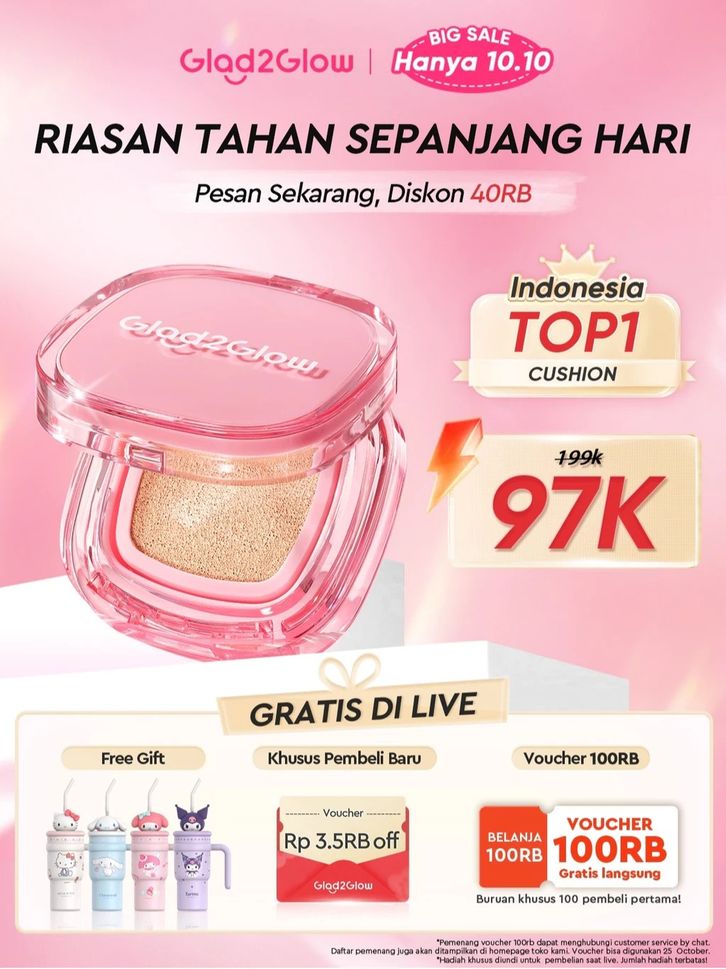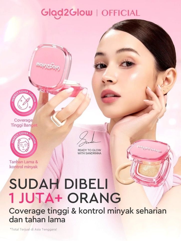 [Mall]Glad2Glow Perfect Cover Cushion Foundation Waterproof Make Up Setting Concealer BB Cream Tahan Lama Hingga 12 Jam