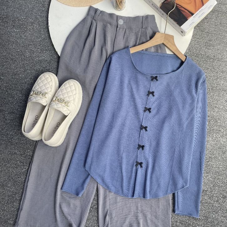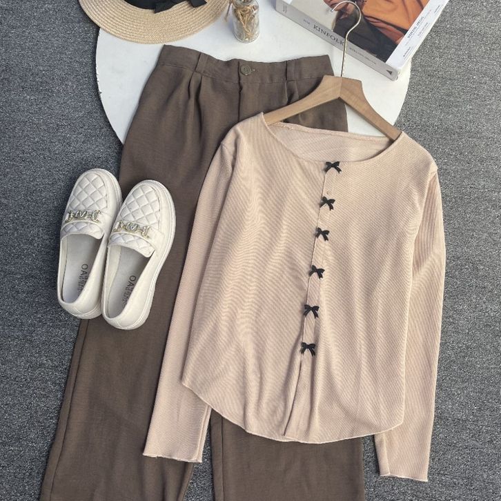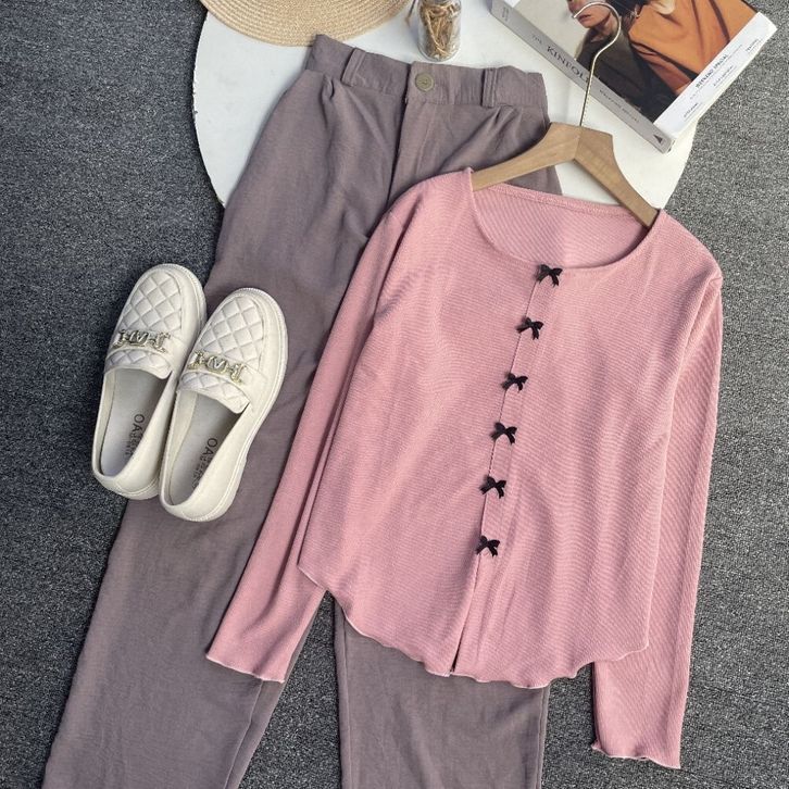 ONE SET SETELAN WANITA KEKINIAN TERBARU 2025 CELANA PANJANG KAOS PITA REMAJA COQUETTE KULOT CRINCKLE BUAT HANGOUT