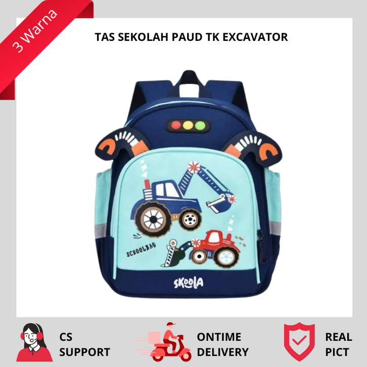 [Mall] Tas Sekolah Anak Laki TK Paud Excavator Beko Kendaraan Teknik Skoola 3d Design Premium Berkualitas Viral