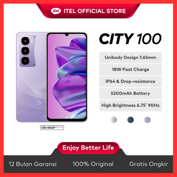 [Star] itel City100 RAM 128+18GB(6+12GB) - Big Battery 5200mAh - 6.75'' 90Hz High Brightness Display Hp Murah