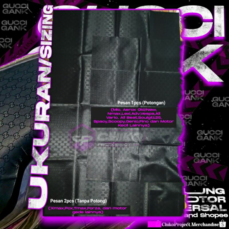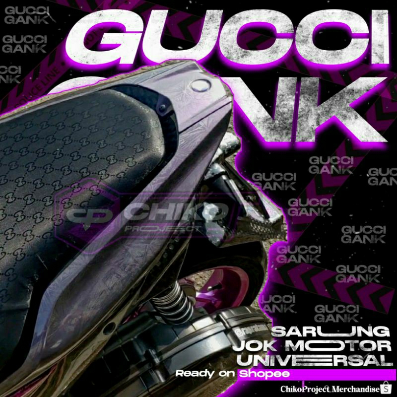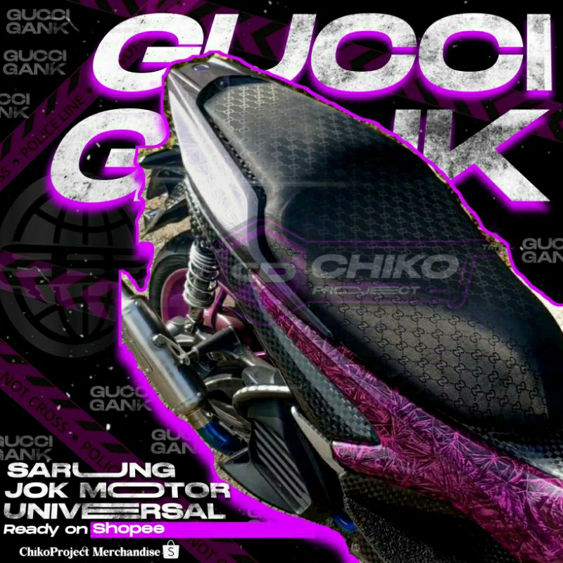 SARUNG JOK MOTOR UNIVERSAL MOTIF GUCCIGANK BLACK (FREE STICKER & LABEL GUCCI)