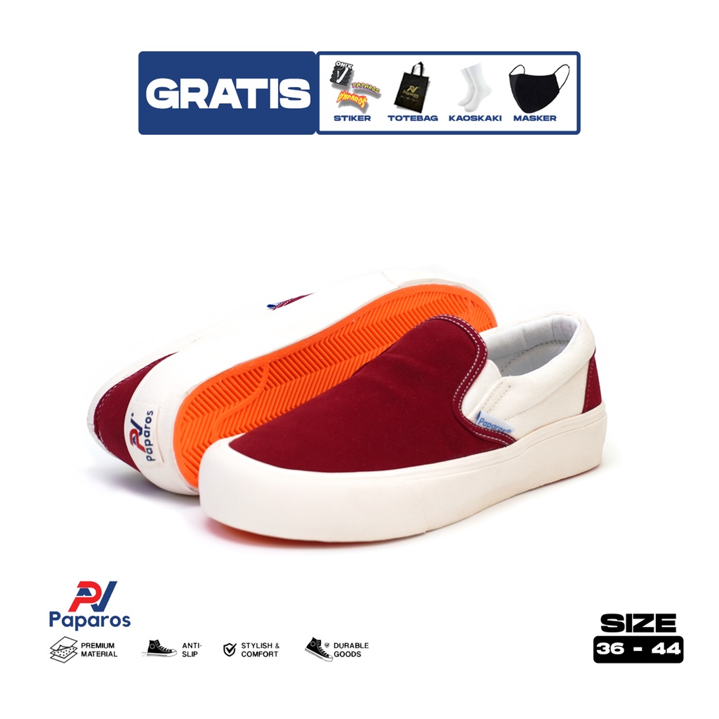 PAPAROS FOOTWEAR-SLIP ON WHITE MAROON - SEPATU SNEAKERS CASUAL PRIA WANITA ORIGINAL UNISEX MAROON SEKOLAH KANTOR ONGKIR