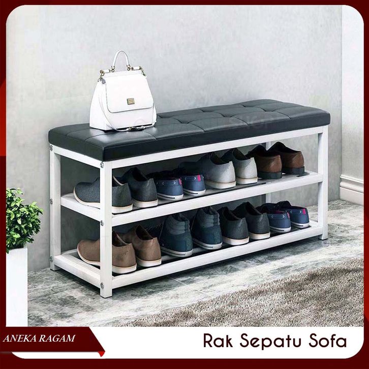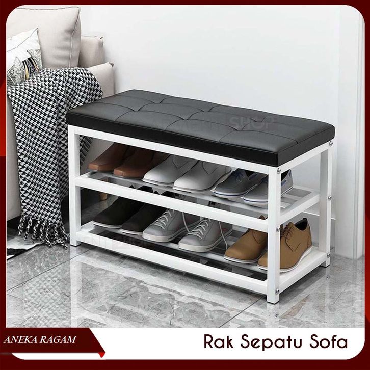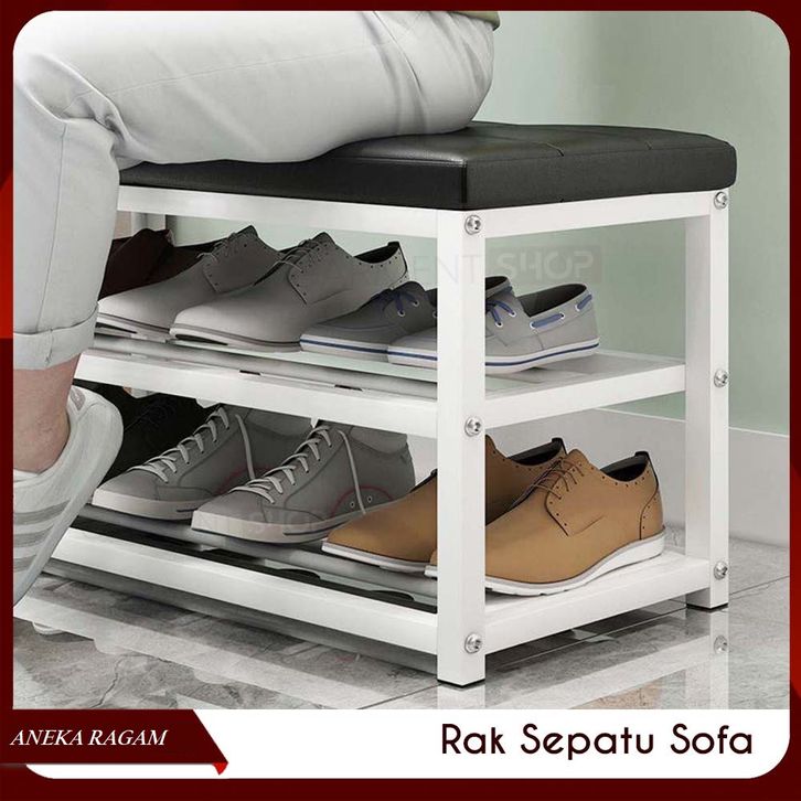 Rak Sepatu Duduk Sofa Besi Tempat Pakai Sandal Ruang Tamu Kokoh Kuat Lemari Sepatu 2 Susun