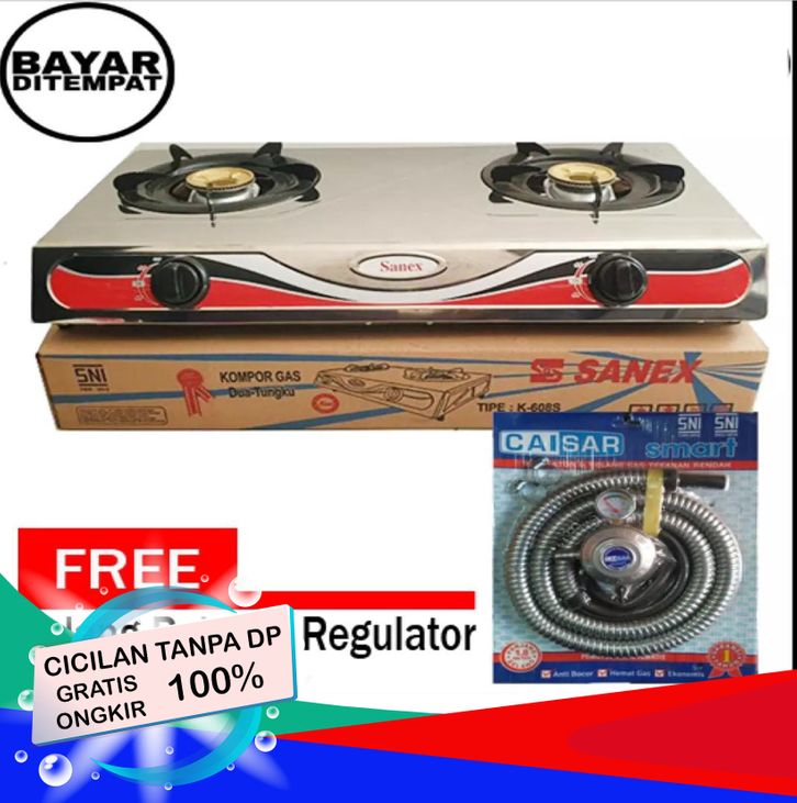 GROSIR/CICILAN SANEX K-608S KOMPOR GAS 2 TUNGKU STAINLES PILIH + PAKET SELANG