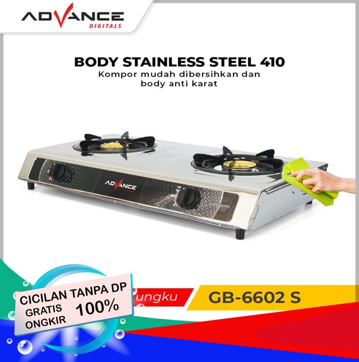 GROSIR/CICILAN KOMPOR GAS ADVANCE GB-6602S KOMPOR GAS 2 TUNGKU STAINLESS STEEL